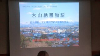 春山氏の講演は、考古学的な遺物、神社の由緒、古文献の記録を組み合わせながら、まだまだ確証の得られていない部分も多々在りながも、大山が古代出羽国成立の重要な拠点であったこと物語るものでした。身近な神社や地名に込められた歴史の重みを知り、私たちの足元に広がる古代のロマンを感じることができた充実した講座となりました。