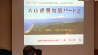 「大山から見る庄内古代」と題された今回の講座では、私たちが暮らす大山地域に古代からどのような人々が住み、どのように文化が形成されていったのかが、丁寧に語られました。